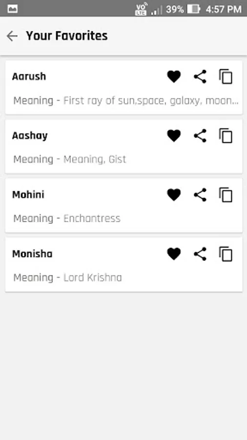 - Share names with family or friends with whats app, Gmail,Facebooketc.