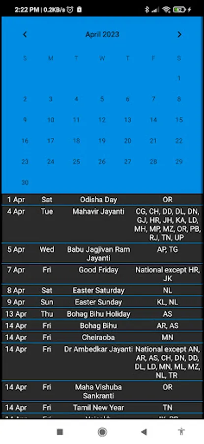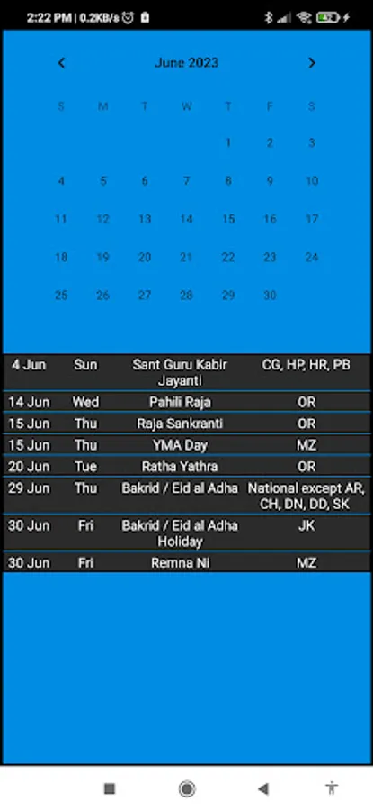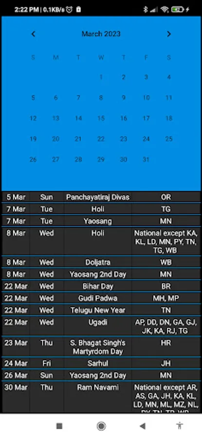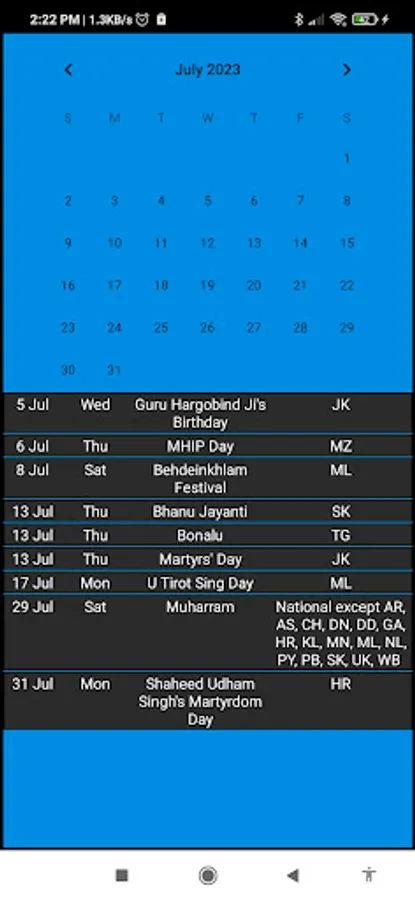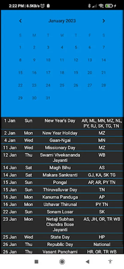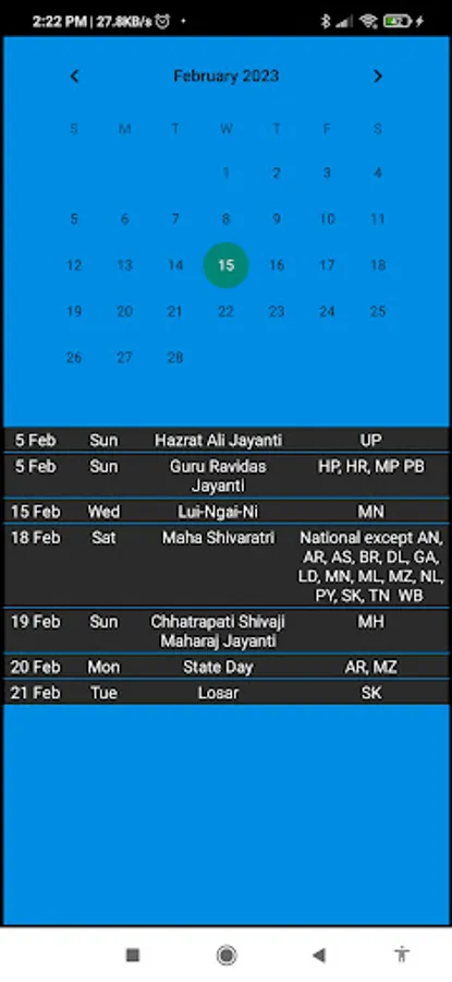 In this app, public holidays of all states of India are shown and we can easily see all state holidays list.