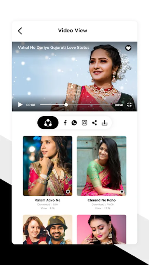 Gujarati Video Status App has been made with love for true fans of Gujarati Music. The app offers the best evergreen collection of latest and old Gujarati Video songs status for WhatsApp. In this app, you will get the latest and trending old and new Gujarati Love Video status for WhatsApp. Navratri Video Status - Biggest Garba collection of video status. Celebrate your Navratri with Navratri Video Status.