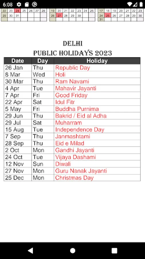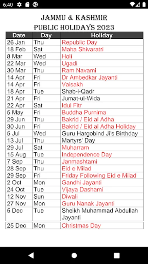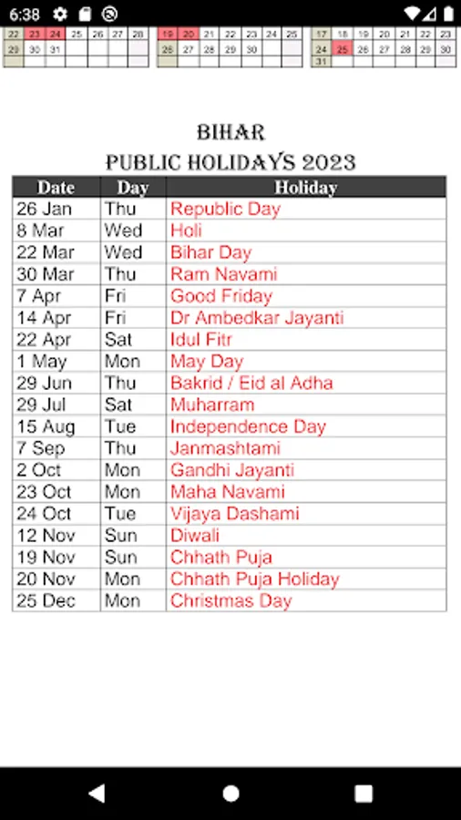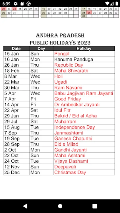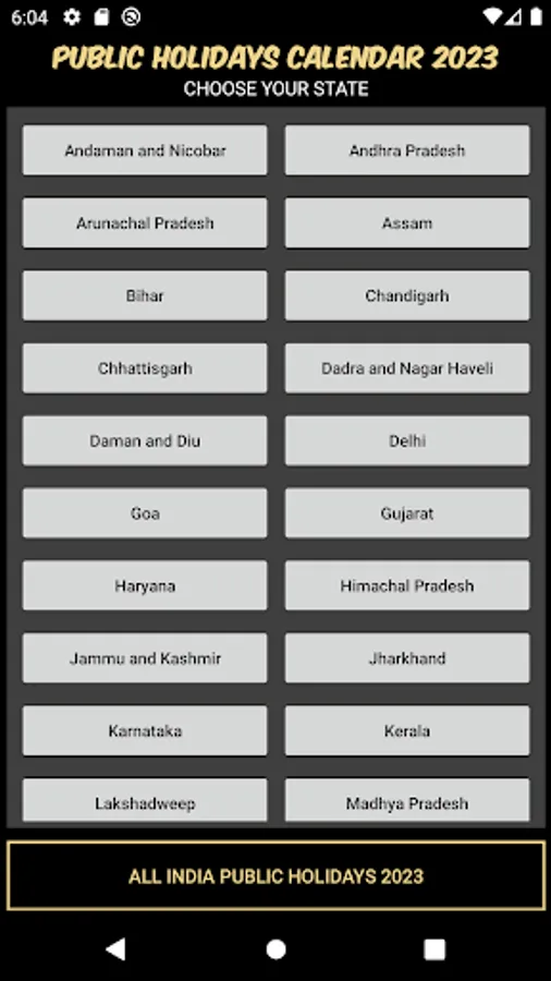 In this app public holidays of all states of India are shown which we can easily see all state holidays list.