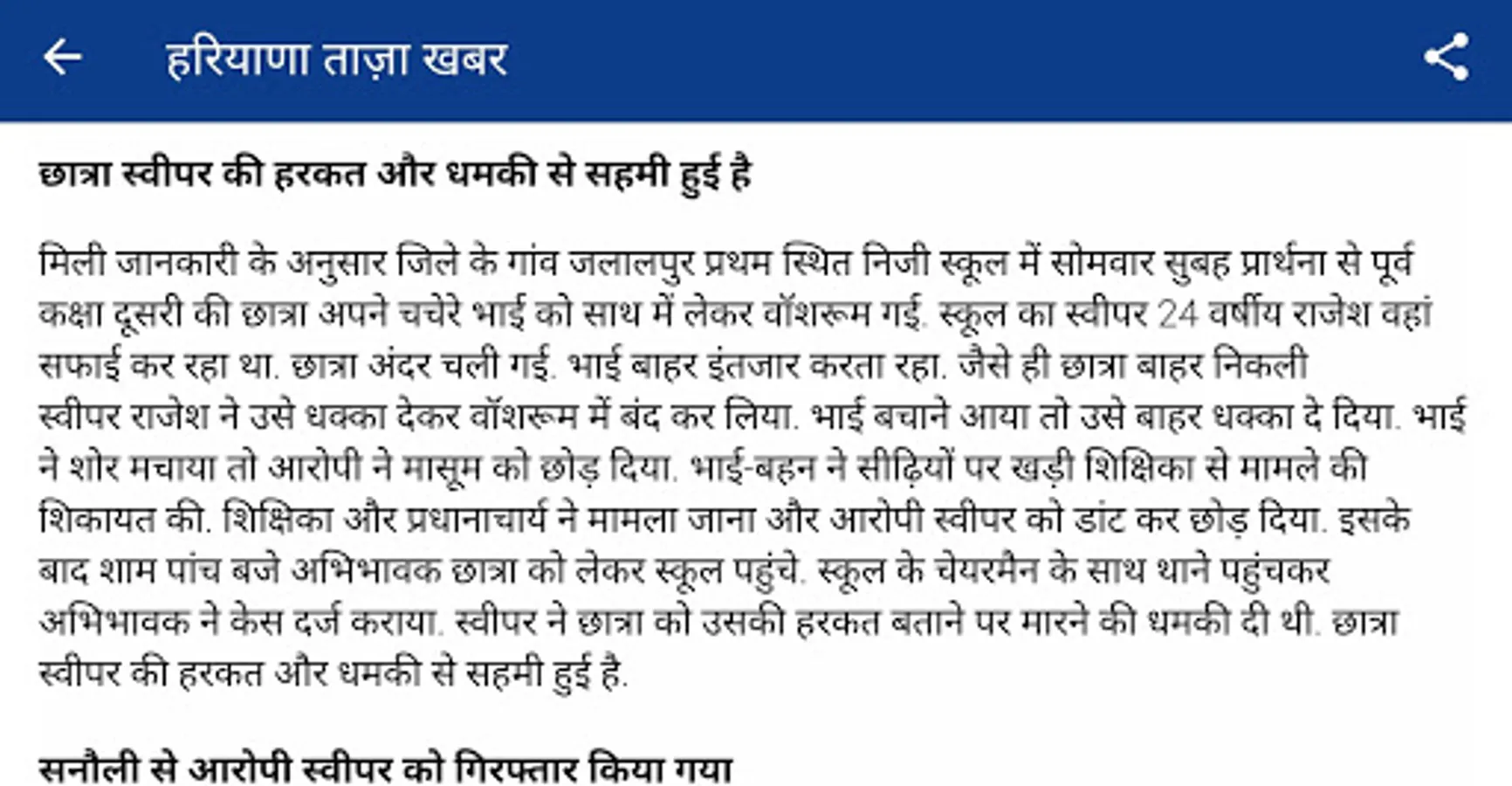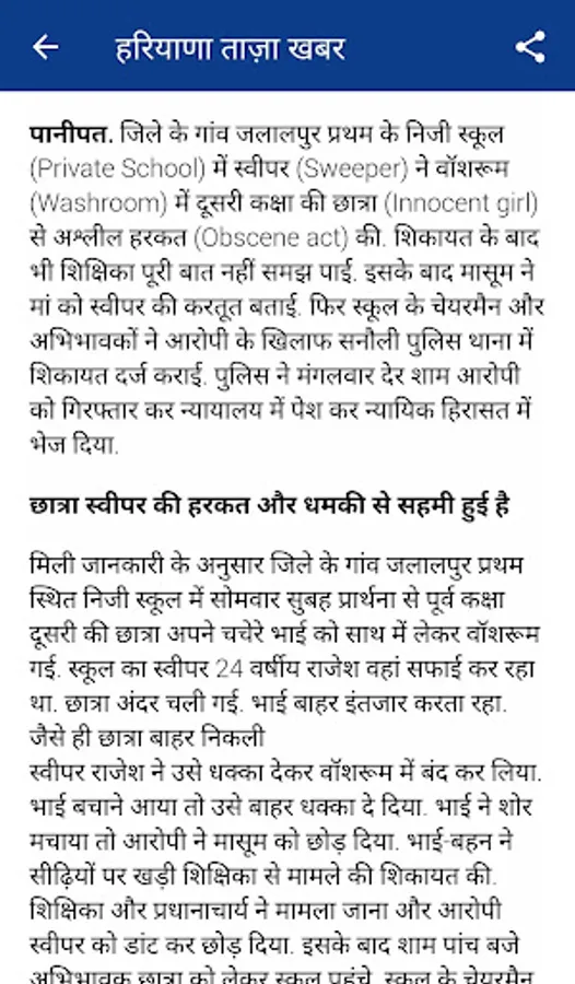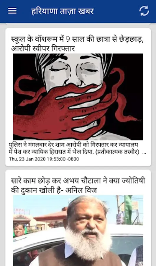 Haryana Hindi News is an Android application to get the latest and breaking news of Haryana in Hindi from your favourite newspapers & TV Channels websites. Explore Haryana's happening topics like, culture, business, politics, sports & more.ETV Haryana News