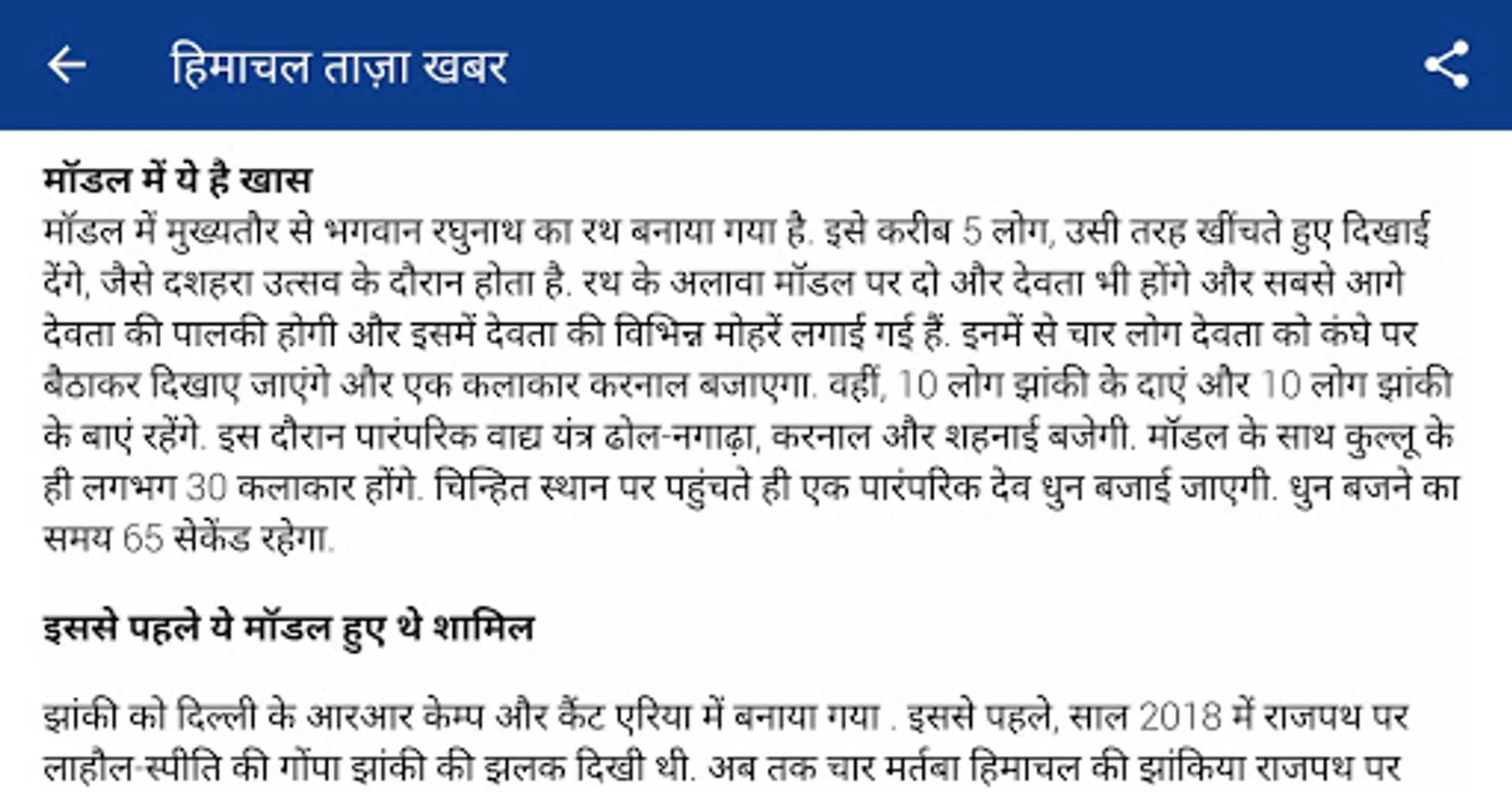 Himachal Hindi News is an Android application to get the latest and breaking news of Himachal in Hindi from your favourite newspapers & TV Channels websites. Explore Himachal's happening topics like, culture, business, politics, sports & more. From ETV Himachal Pradesh