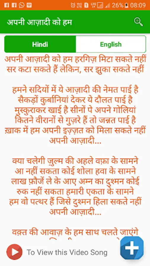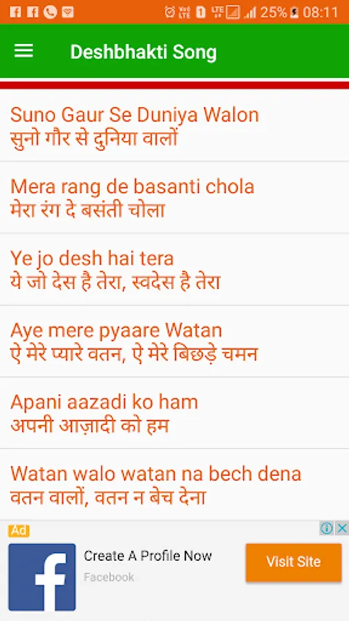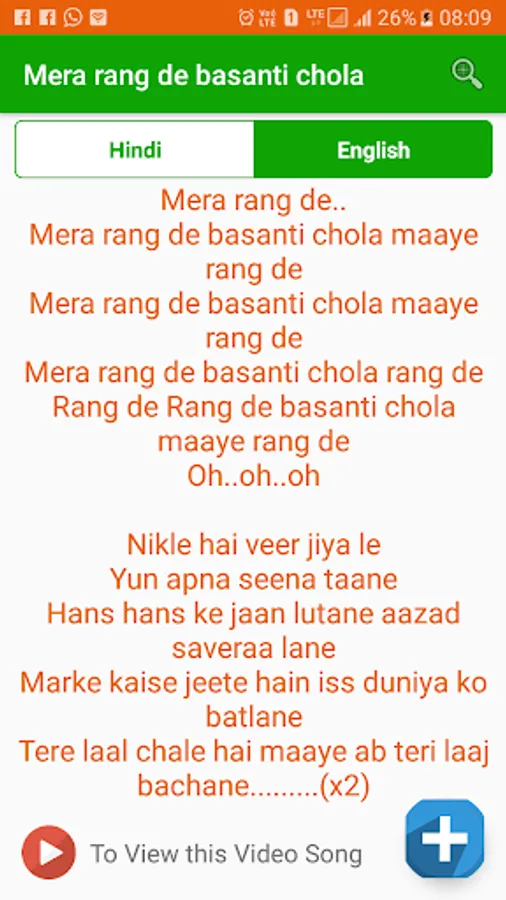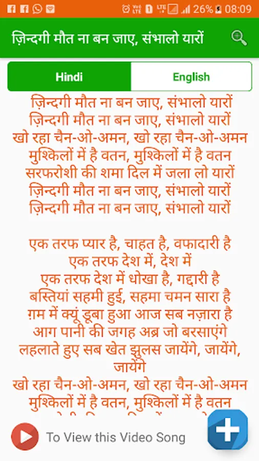 Deshbhakti SOng Lyrics apps provide you Hindi lyrics and ENglish lyrics of Patriotic song.
