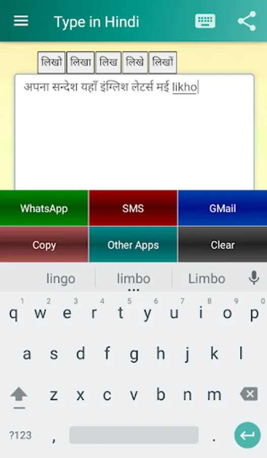 You can enjoy typing in your local languages such as Hindi, Bengali, Marathi, Telugu, Tamil, Kannada & Malayalam very easily using this app and share the messages using any app on your phone.