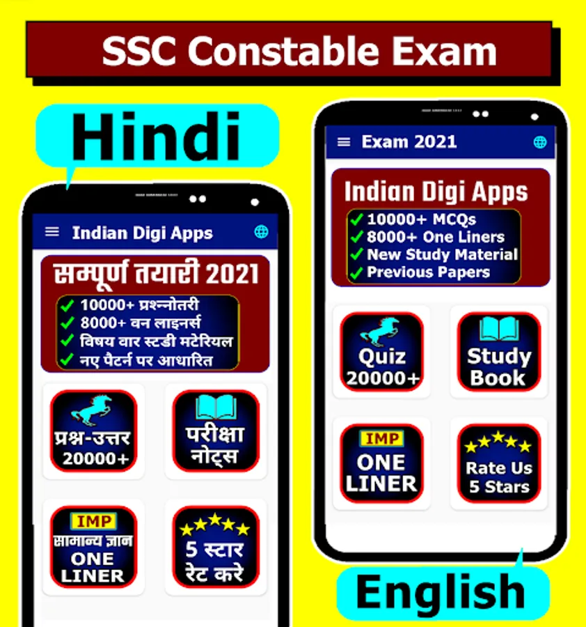 This app is a complete Study Package for Upcoming SSC Constable Exam in English and Hindi. It contains One Liners Gk, Study Material and Practice Sets for Exam.