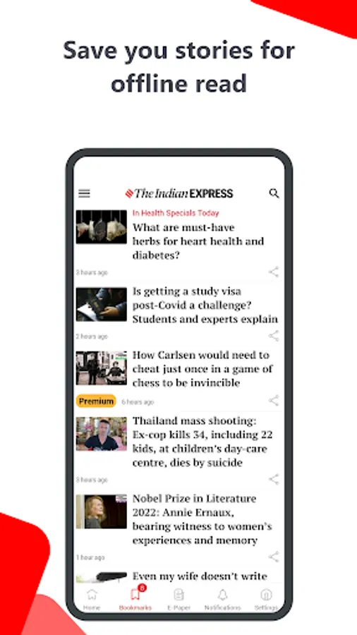4. Offline Reading - Bookmark stories and read news in offline mode even without internet