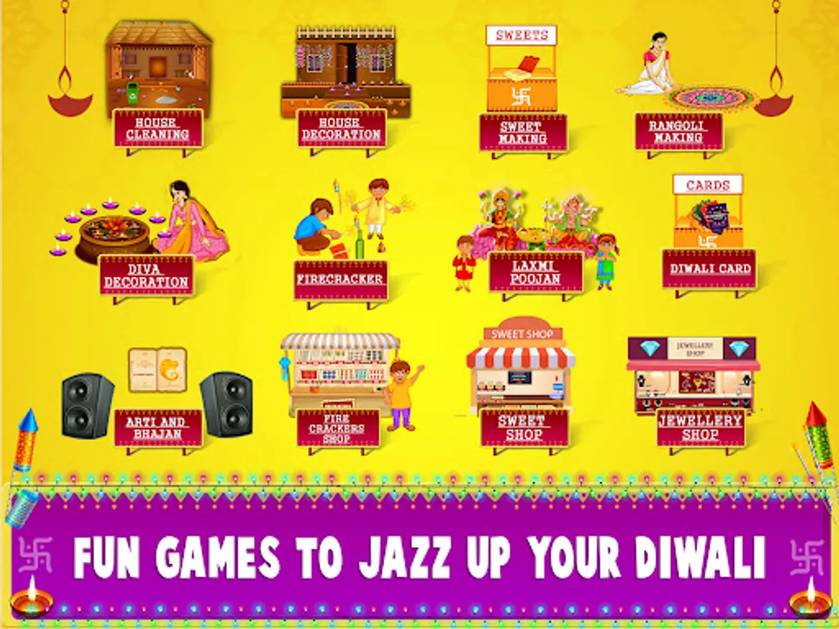 Play these super fun Indian Diwali Games To jazz up your diwali fest. Diwali Fireworks Maker, Cracker Simulator, Indian Dressup, Diwali Shopping, Easy Rangoli Designs and many more!