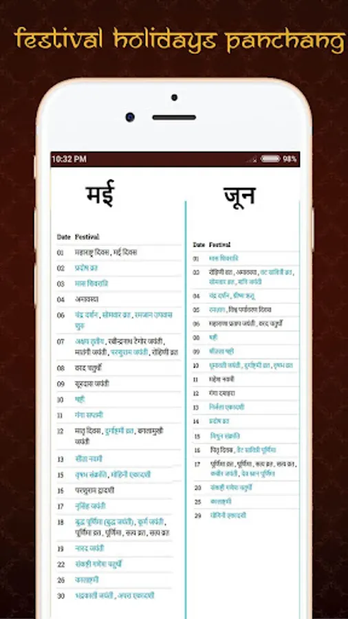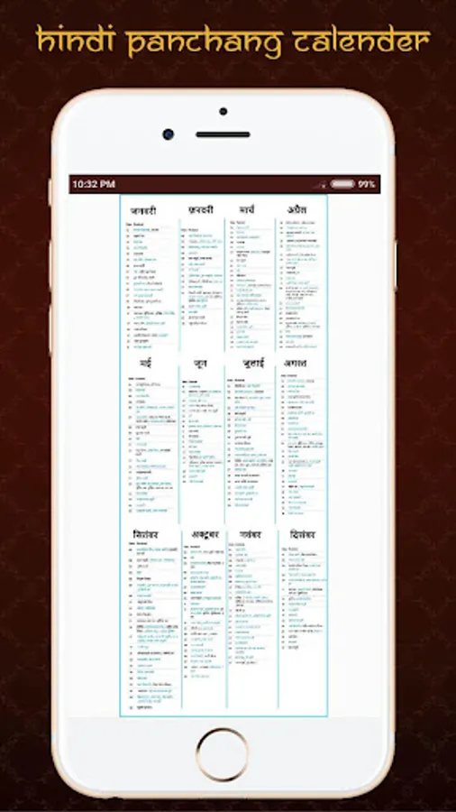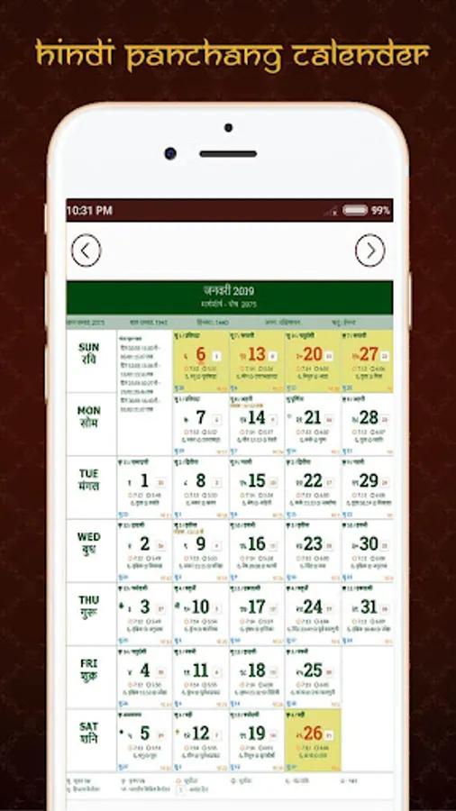 ◆ Also shows varsh (Year), maah (month purnimant and amavasyant), zodiac of moon, ayana (Dakshinayan and Uttarayan) and the ritu (Season), along with their end times.