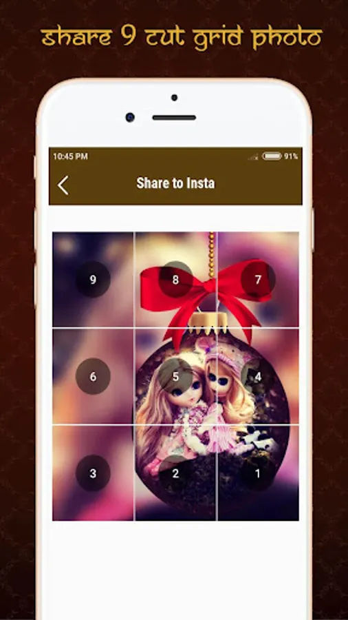 9Cut For Insta quickly lets you post the split images to Insta and show it as one big photo on your profile. The best free app to crop your pictures in 3×1, 3×2, 3×3, 3×4, 3×5 and 3×6 grids and share directly to Insta.