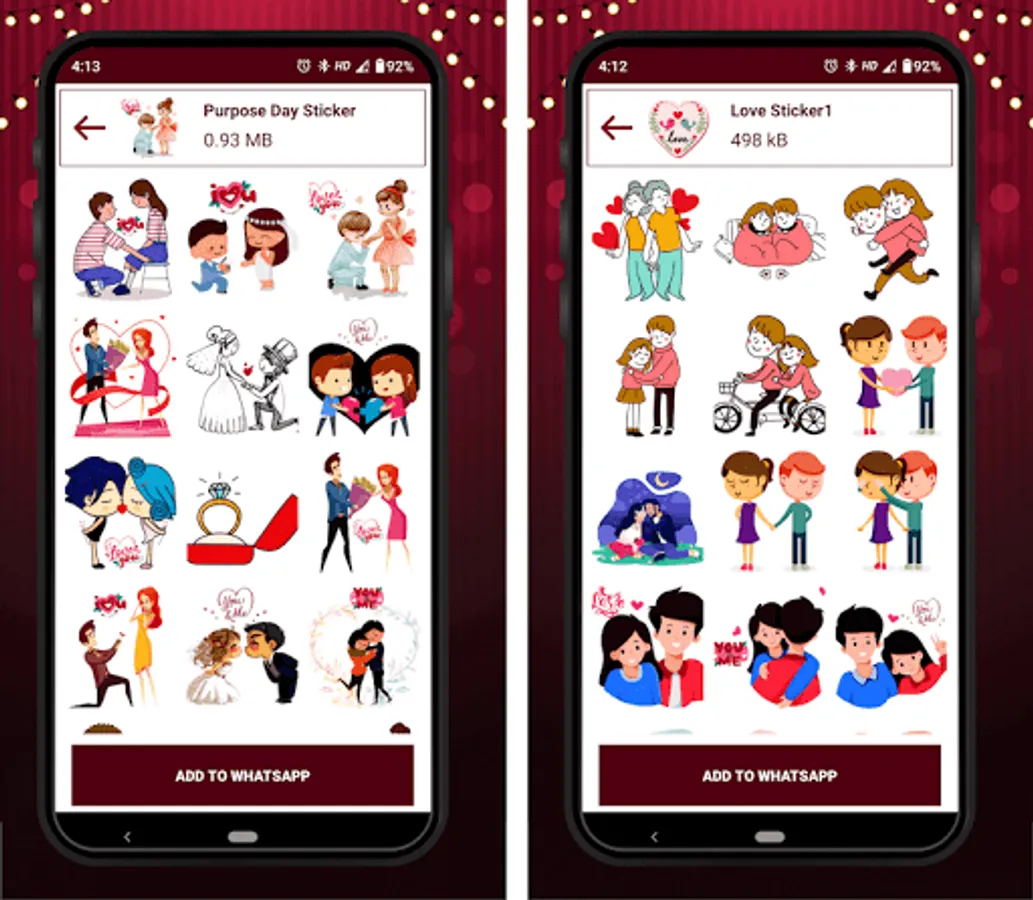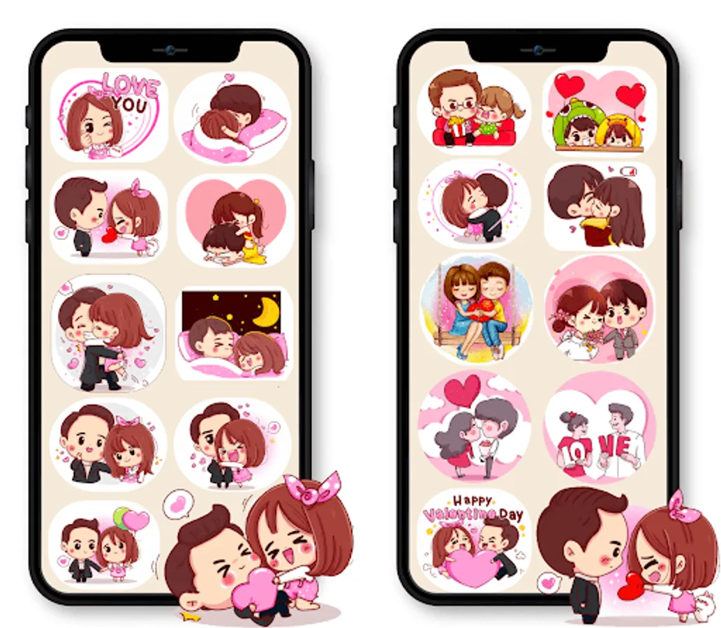 WAStickerApps love story stickers is your personal love stickers chat in your daily conversations powering you with large and carefully chosen love stickers and romantic stickers collections for WAStickerApps including love story and relationship stickers, lovers stickers, amor stickers and cute couples stickers.