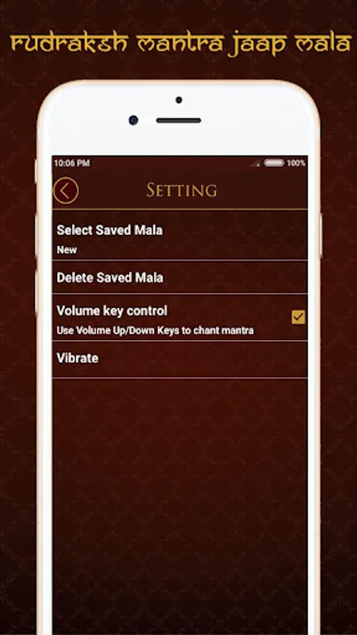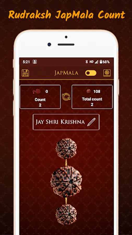 In addition to that, you can listen to 6 different chantings (Om, Om Namah Shivay, Om Namo Narayanaya) Om Gam Ganapathaye, Gayathri Mantra and Narasimha Mantra) while counting the beads, and can set a background music (Thamburu or Om) and you can select between three types of rudraksha beads