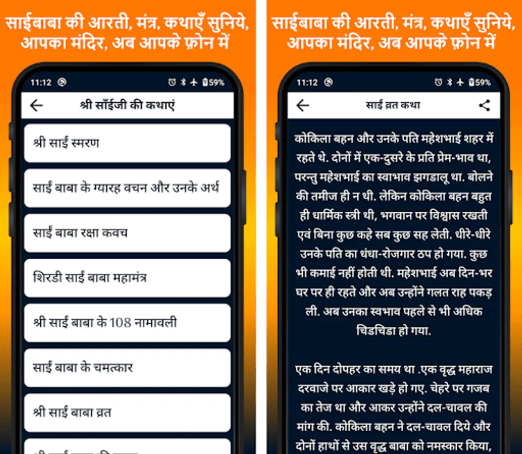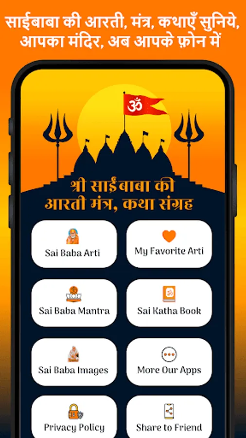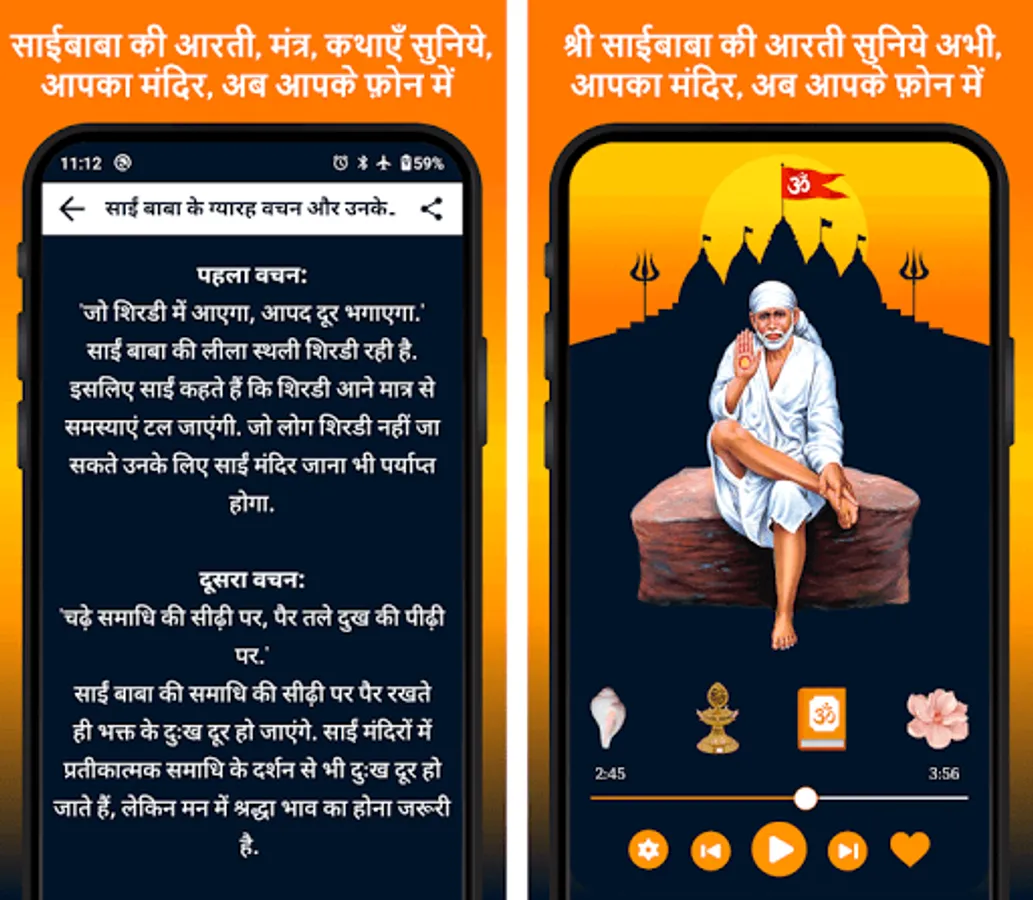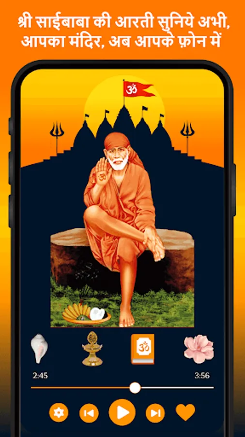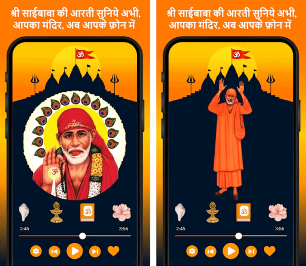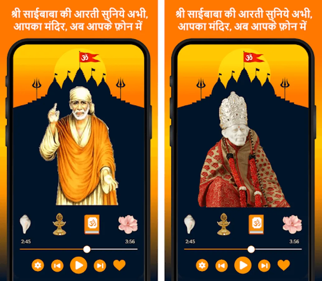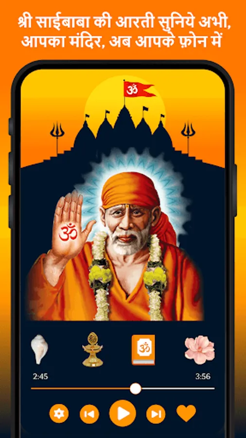 Sai Baba Aarti is a form of worship by which the devotee is able to express his devotion to the Lord. Baba's Aarti is sung in Marathi,the native language of the state of Maharashtra(where in Shirdi is located) and started by Sai devotees in Babas lifetime. sai baba chalisa bhakti song audio in hindi app: