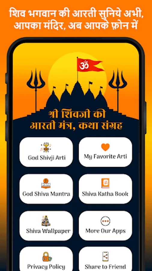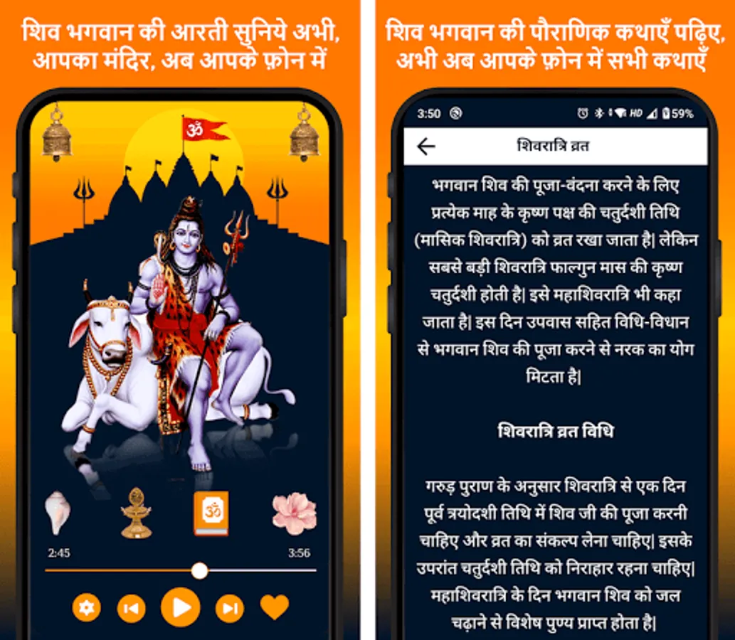 Shiv Aarti Chalisa Mantra शिव आरती चालीसा व्रत कथा app is devotional songs of Lord Shiva. This app is dedicated to all devotees of hindu god shiv. This app Arti Chalisa brings you a collection of Lord shiv Hindi arti for you filled with devotion.