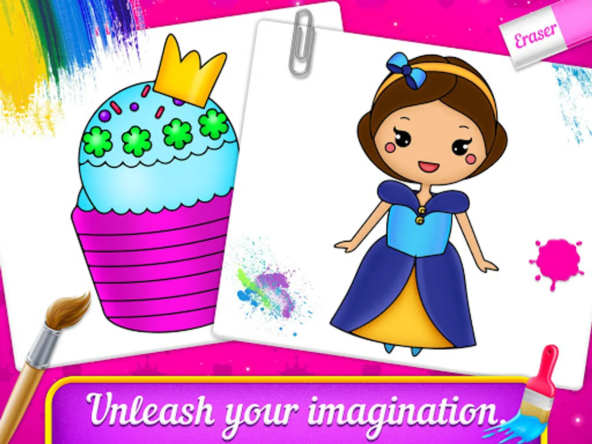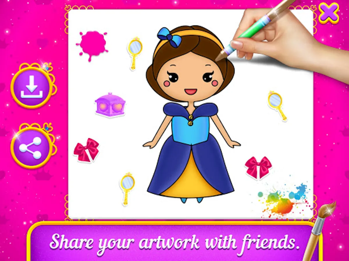 Discover some of your favorite princesses in a new and awesome coloring game!.Welcome to the colorful world of Princess Coloring Pages! These interesting painting games will encourage your kid's creativity. The Best princess coloring book of kids game! Color the coloring pages of princess, princes, fairy and pretty girls on your phone or tablet