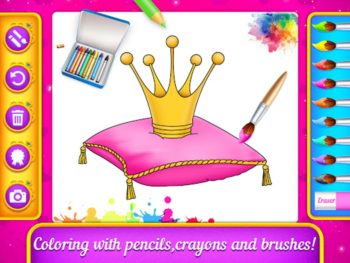 your little girl can start coloring princess coloring pages and start learning how to manually fill and draw lines and other objects. If you're looking coloring games for girls 10 and older, this one is the best choice as well.