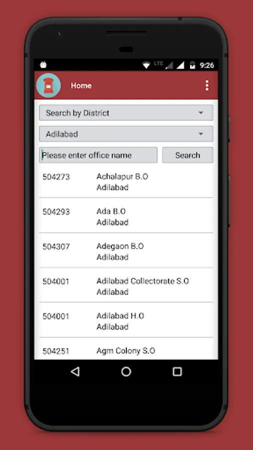 India pincode directory provides a full list of pincodes of India. By using the application, you can search by pincode, office name or district.