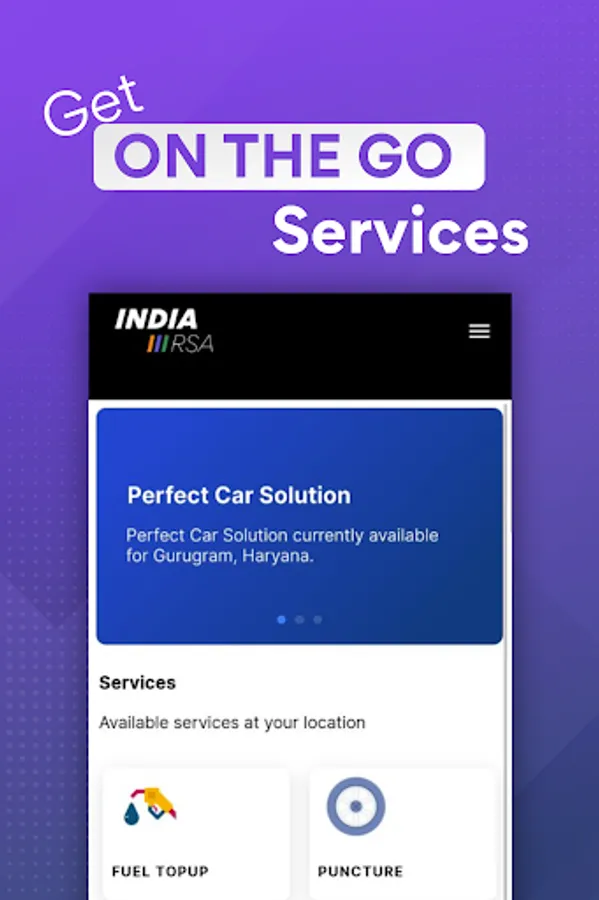 India RSA is India's leading car & bike services app with a car & bike servicing center in Gurgaon, providing 24 X 7 roadside assistance. The application provides emergency support to customers in the event of a breakdown.