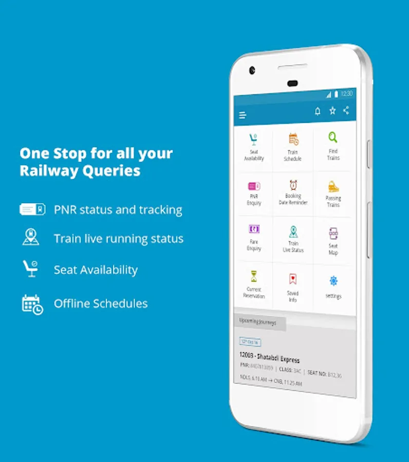Indian Rail app has 1) pnr status and tracker 2) Find Trains 3) Seat Availability 4) Train Schedule 5) Train Live Status 6) Arrival Departure 7) Offline information for Train Routes 8) Easy options to save information like PNR, Train Schedule and share it with your friends via SMS, Email etc. 9) View routes on google map 10) Seat / Berth Map