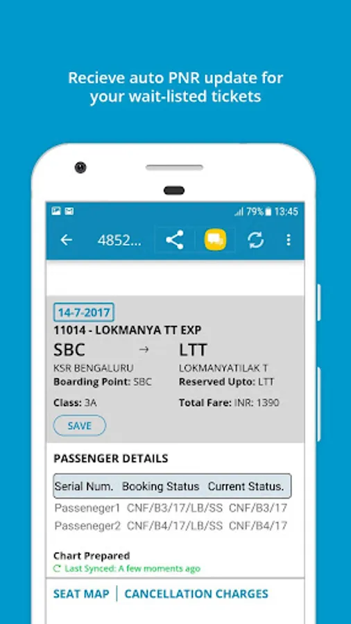Disclaimer: This app is not affiliated to irctc or indian railways and there are no warranties associated with the app. By using this app, you are solely responsible for any legal implications/liabilities arising from using the app.