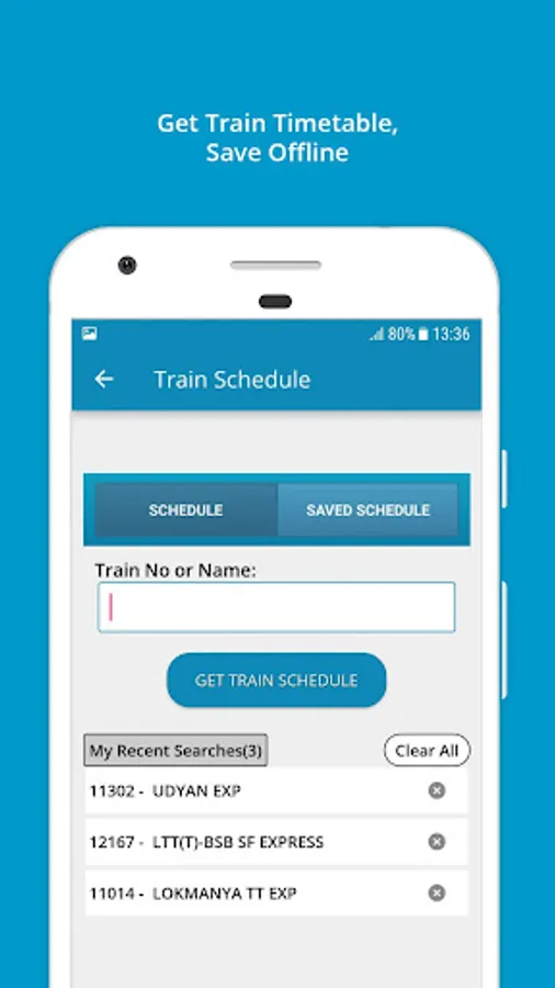 - Don't need to remember train names or numbers. Search can be done using train number or name(partial or complete) on all the pages.