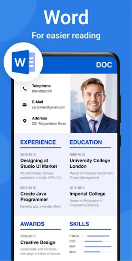 In addition, our PDF Reader and PDF Viewer feature lets you quickly open PDF files, read all PDF files, merge and combine PDF files, and share and print PDF files. Our Word Document Reader supports Doc/Docx files, allowing you to easily search and manage Word documents from your mobile device. Our Excel Spreadsheets Reader and Viewer supports XLS/XLSX files, making it easy to view and manage spreadsheets on-the-go. And with our PowerPoint Slides Viewer, you can read and view your presentations using a PPT viewer with high resolution and fast performance.