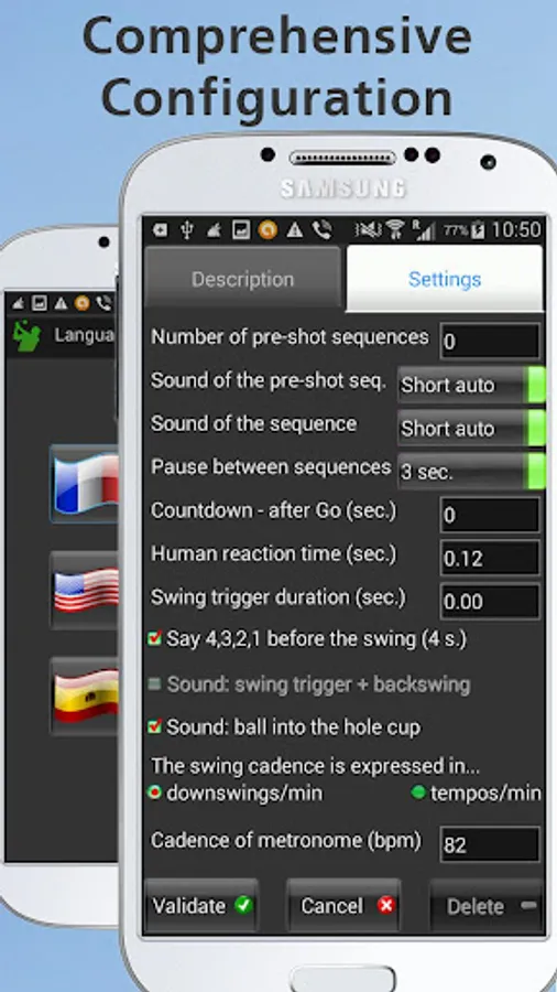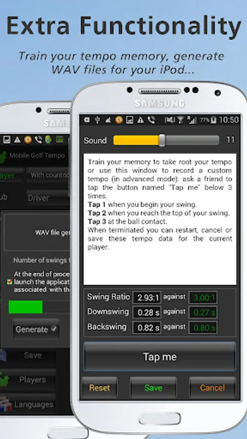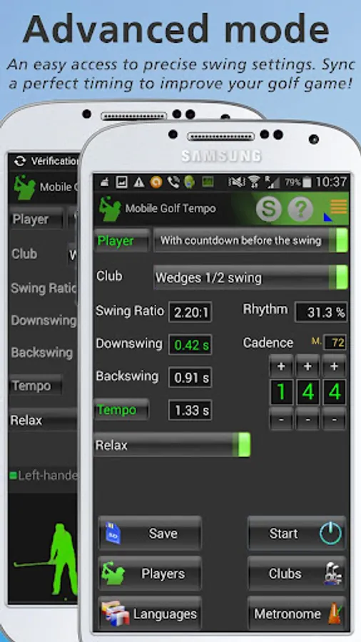 For the demanding golfers, Mobile Golf Tempo allows them to change all parameters of the tempo.