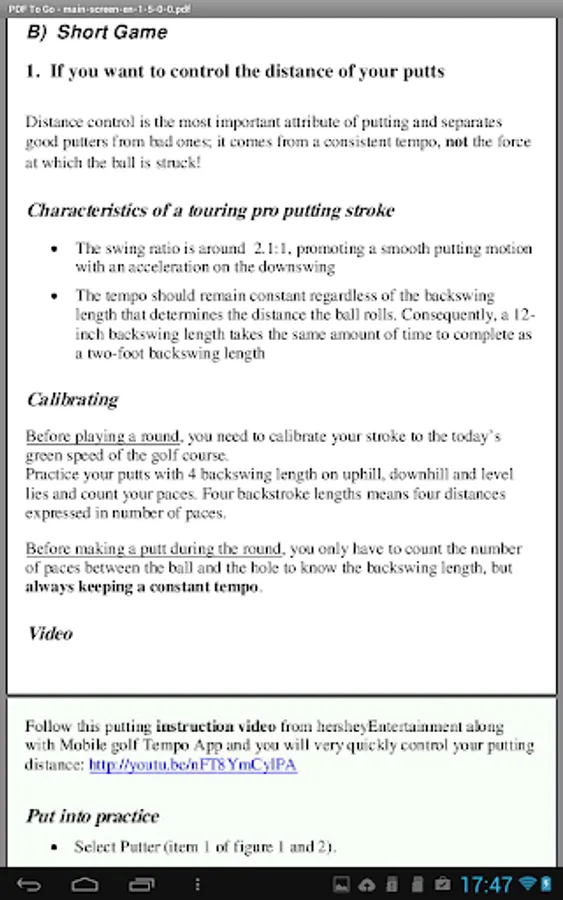 Visit our blog at https://www.mobile-golf-tempo.com/english/blog-in-english to learn to control distance in putting and short game using Mobile Golf Tempo