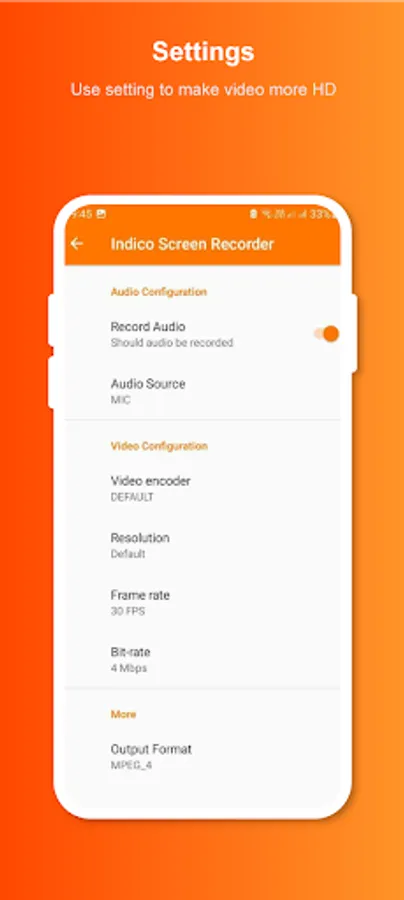 Customizable Settings: Screen Recorder - Recorder offers a range of customizable settings that allow you to tailor your recordings to your specific needs. You can adjust video resolution, frame rate, and bitrate, as well as choose between different video codecs for optimal performance and quality.
