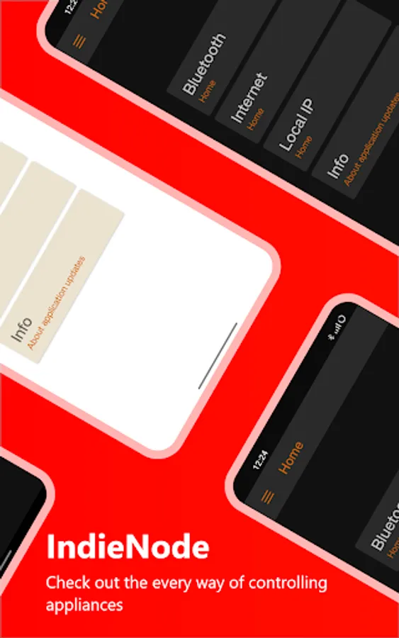 Set up, manage, and control your relay devices with wifi (Local IP), Internet (Firebase), Bluetooth (HC-O5...), and Bluetooth Low Energy ( HM-10...). Turn on the lights, adjust the fan speed or lights brightness, and more - all from the IndieNode 2.0 Home Automation app.