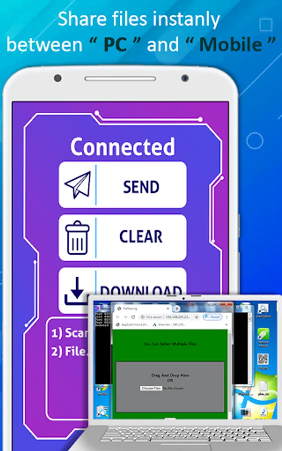 Note:transfer files from phone to pc will not access permissions that are irrelevant to our functionality Camera permission is require for QR Code Scan and file storage pernission is require to download files.