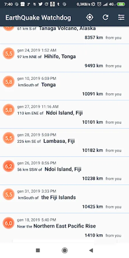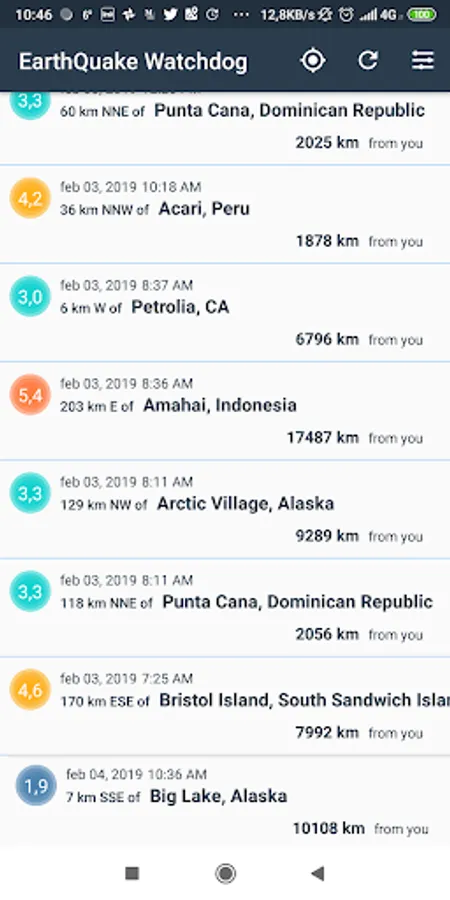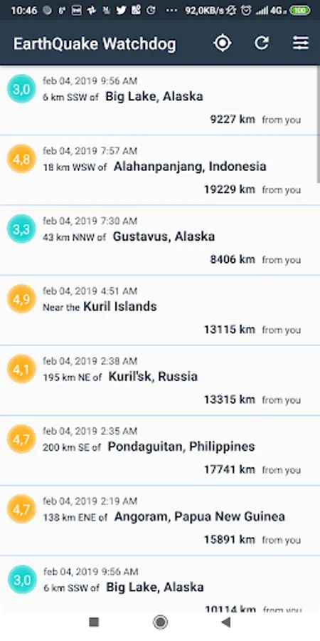 - order list by the nearest/farthest earthquake from you, date or magnitude