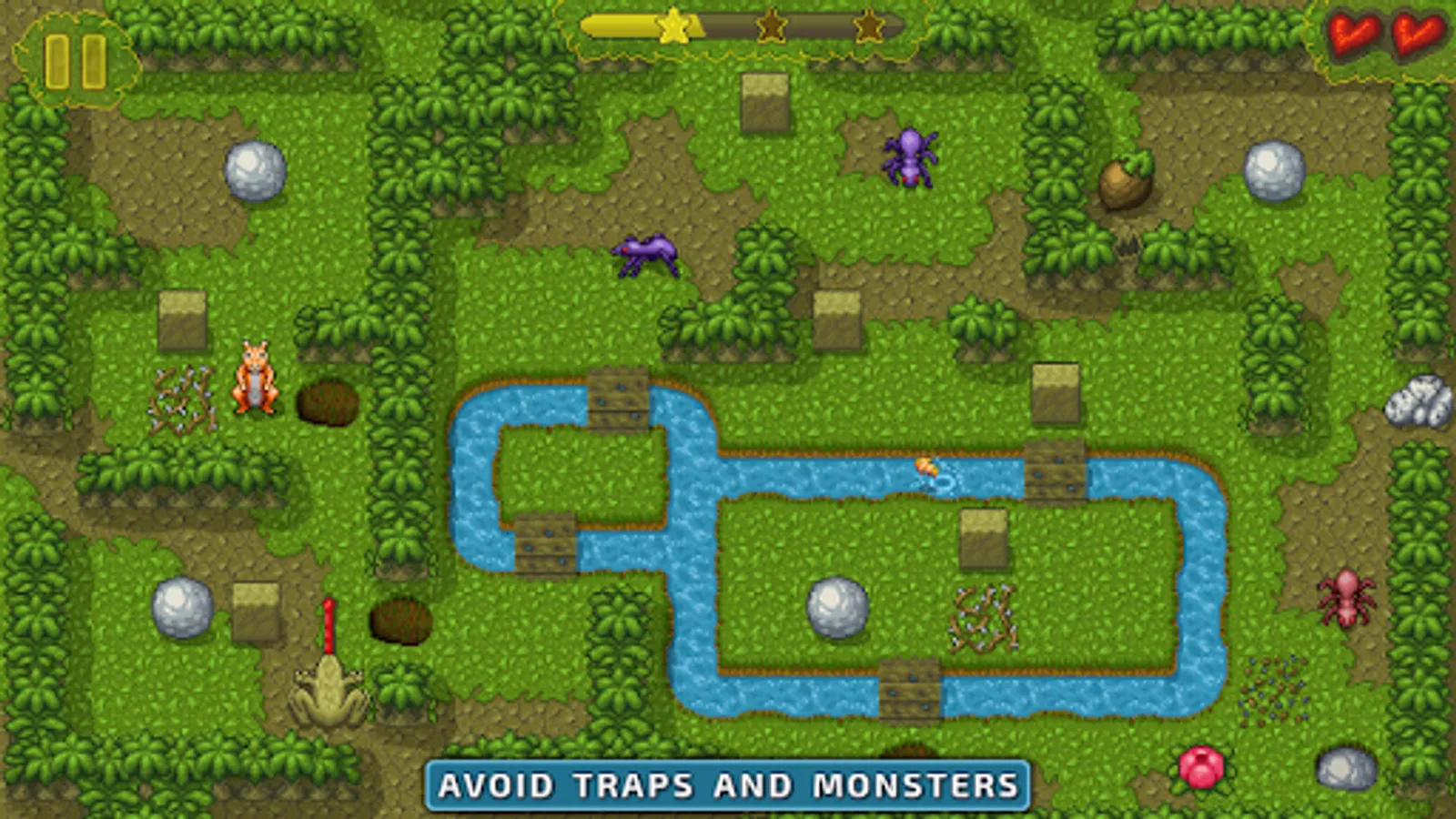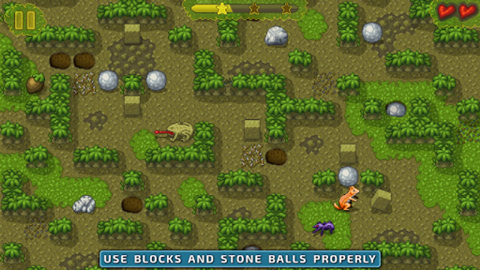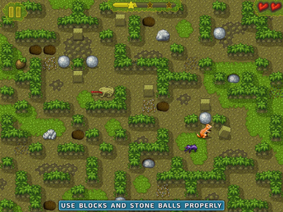 The goal of this puzzle game is to move blocks and stone balls, making your way through your adventure. Close pits, push blocks and pass traps, kill monsters, earn in-game currency, bypass obstacles and finally get the coveted nut.