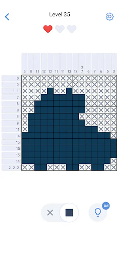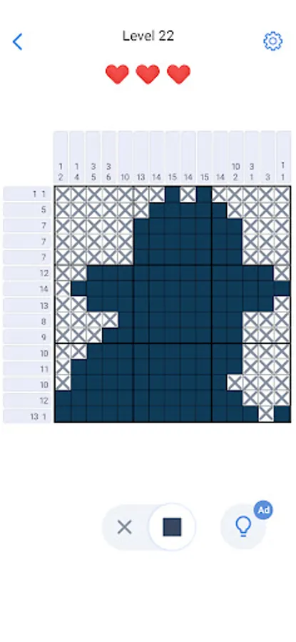 Try to use your logical thinking on the puzzle board to find out where the black square lying and where the 'X' icon taking place in order not to fill up the board.
