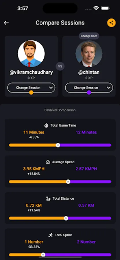 • Comparison – Compare your stats with your previous performance or with Footrax community