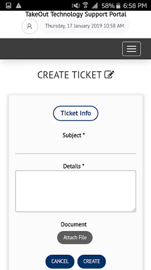 TakeOutTechnology Support Portal allows TakeOutTechnology clients to raise tickets to our support team for quick and convenient assistance. The app also enables clients to manage tickets, view replies from our support team, attach and view image files.