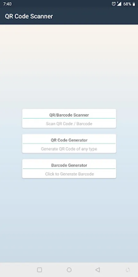 the app has two modes: qr code reader to scan qr code/barcode, qr code generator to generate qr code. with qr code generator.