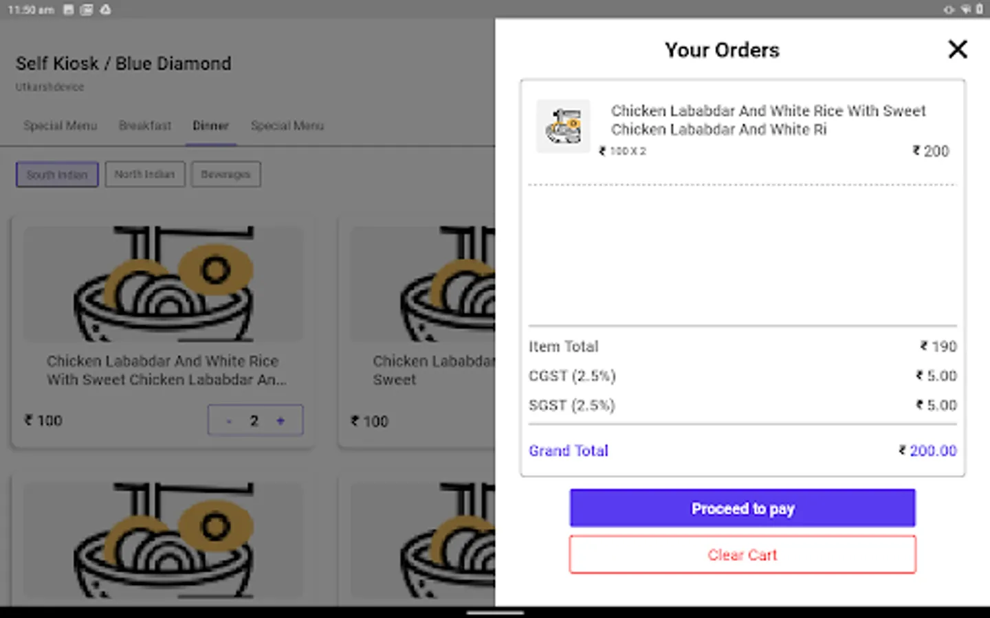 This app is used for managing cafeteria operations. It provides a D.I.Y. kiosk for ordering food and can also be used as a counter-sale management system with integrated payments.
