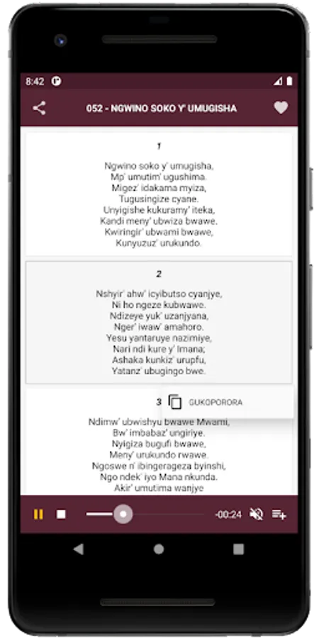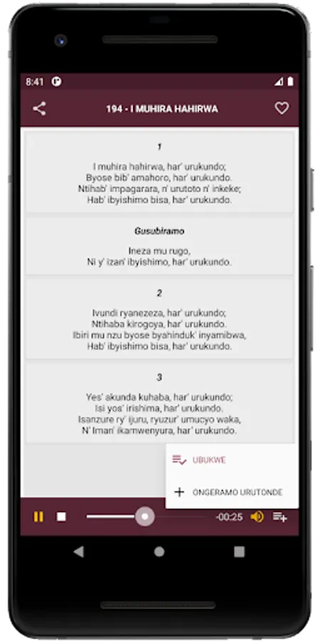 Iyi porogaramu izabafasha gusomera izo ndirimbo kuri phone/tablet yanyu ndetse mushobora no kwiyumvira uko ziririmbwa hagendewe kumajwi acuranze aboneka muri iyi porogaramu.