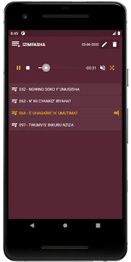 - Urutonde rw'indirimbo zo gukina (Playlist)