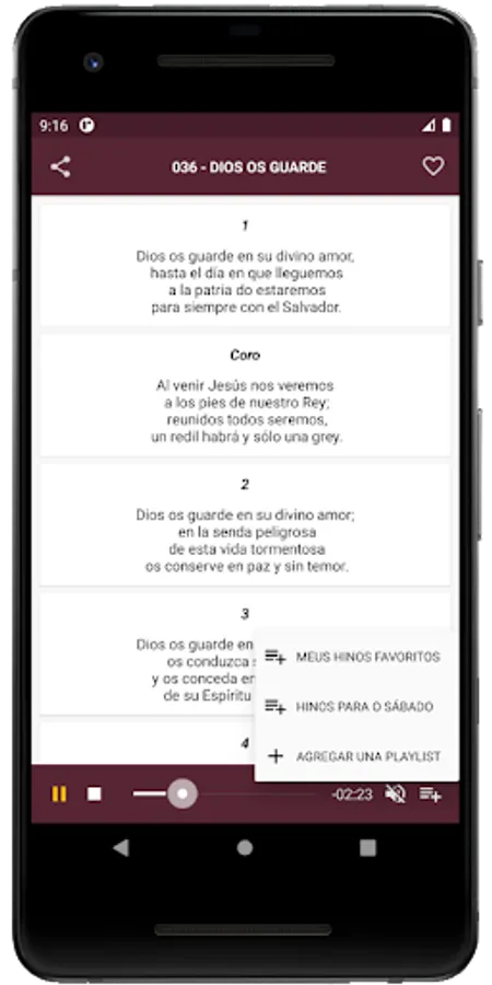 Hymns - A collection of Spanish Adventist hymns. This is an application that allows you to read and listen to praises and hymns of the Seventh-day Adventist Church in Spanish. It has some characteristics: