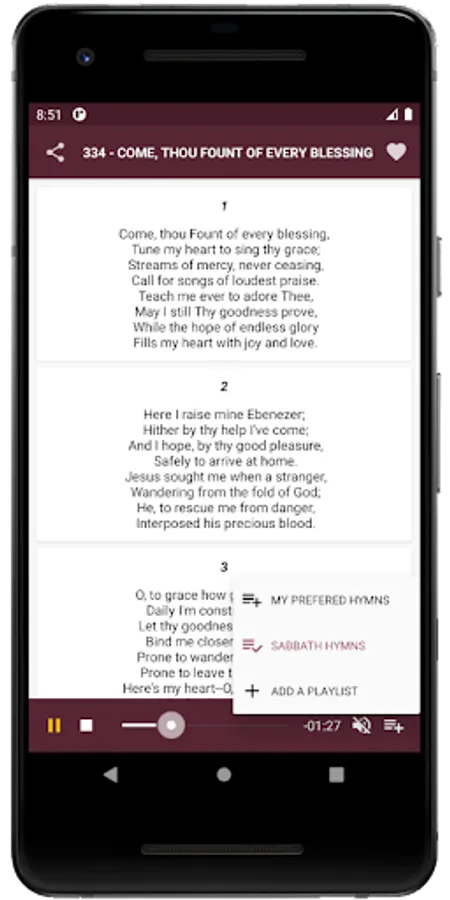 SDA Hymnal - A collection of English songs Adventists. This is an application allowing you to read and listen to hymns of the Seventh-day Adventist Church in English. Here are some features: