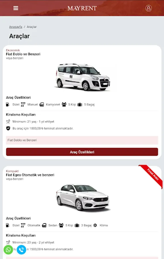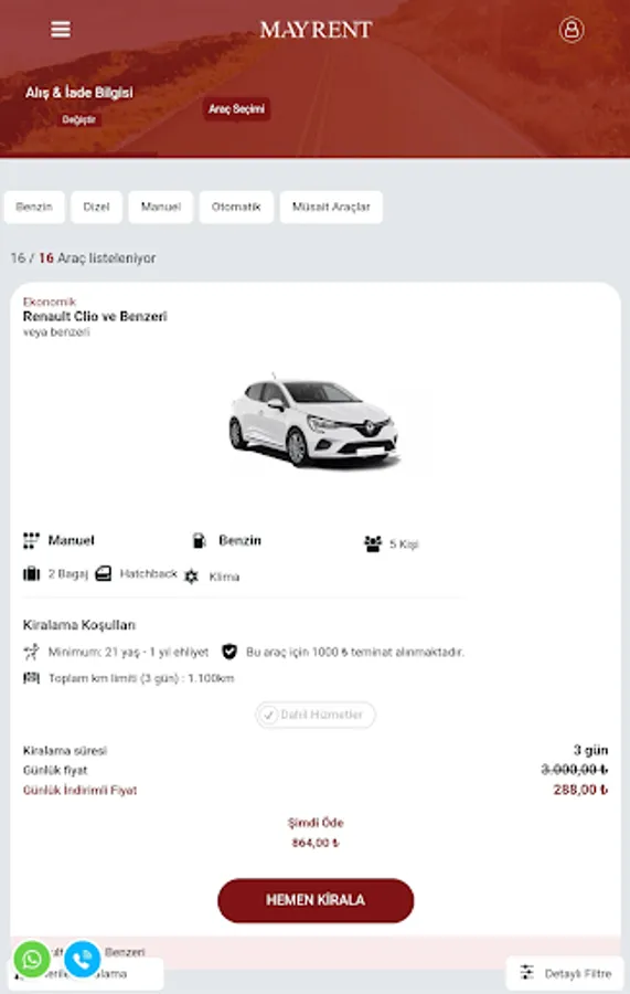 Mayrent, as in other fields of activity in the automotive field, brings together its experience and know-how to its customers. Mayrent has a renewed face, friendly staff, wide vehicle brands and models and a strong staff serving 24/7.