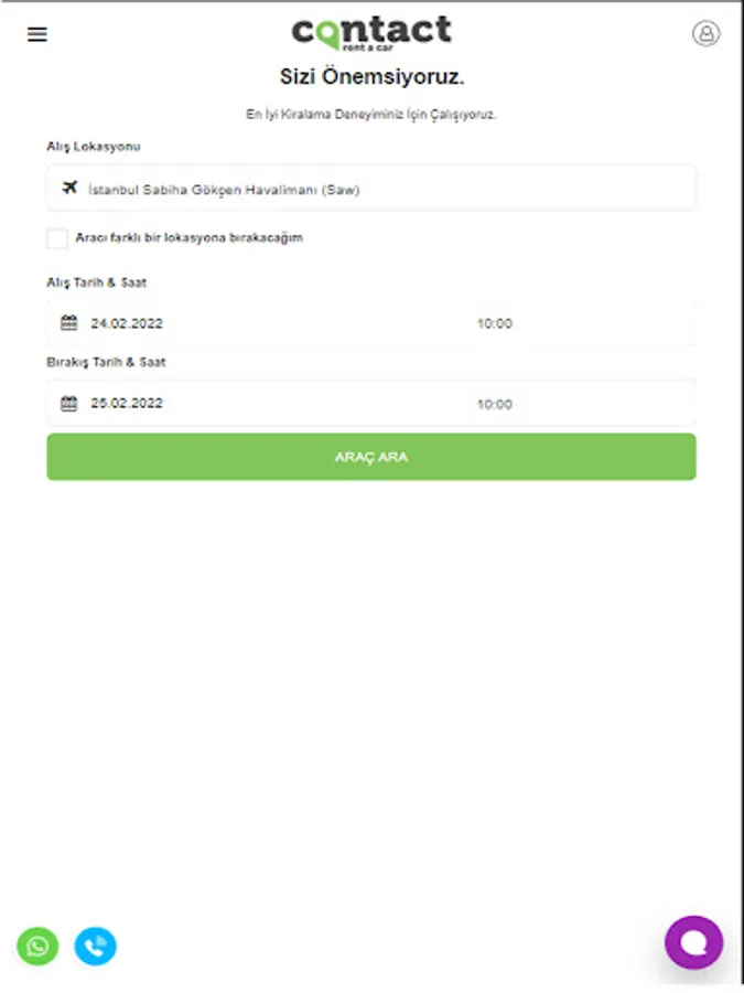 With the Contact brand, it listens to the voice of its customers very well, understands their needs correctly, and tries to find emotional and technological responses to requests and suggestions. That's why it started its activities by saying "We Care About You" to its customers. It continues to work with devotion with the claim of giving you the best rental experience.