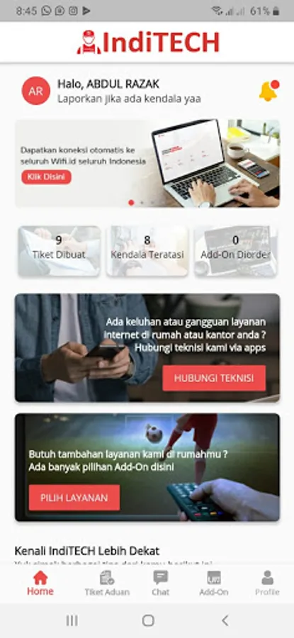 IndiTech is an application for repairing damage to various Telkom devices in each customer's house. Customers can report problems via the app and a technician will come immediately to fix it. If you are a user of various services from Telkom, it is mandatory to download this IndiTech application.