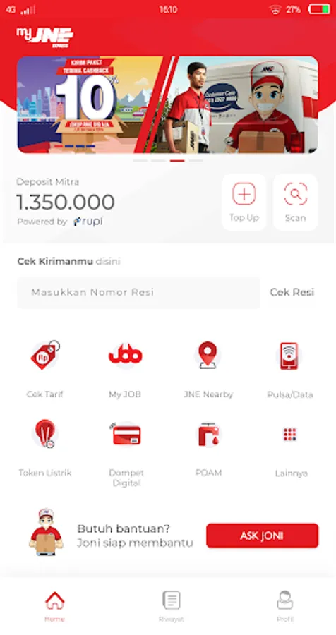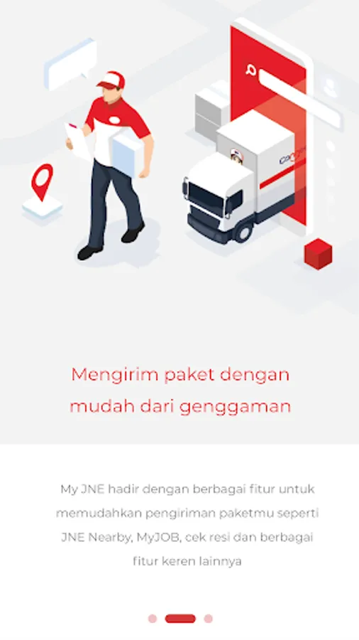 "MY JNE adalah aplikasi berbasis Android yang memudahkan kamu untuk terkoneksi dengan JNE.