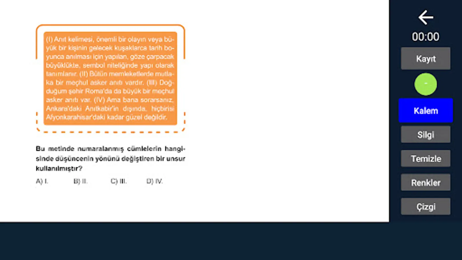With the Question Solution Video Recording Application, you can see your questions on the screen, pen, eraser, etc. You can record audio using tools.