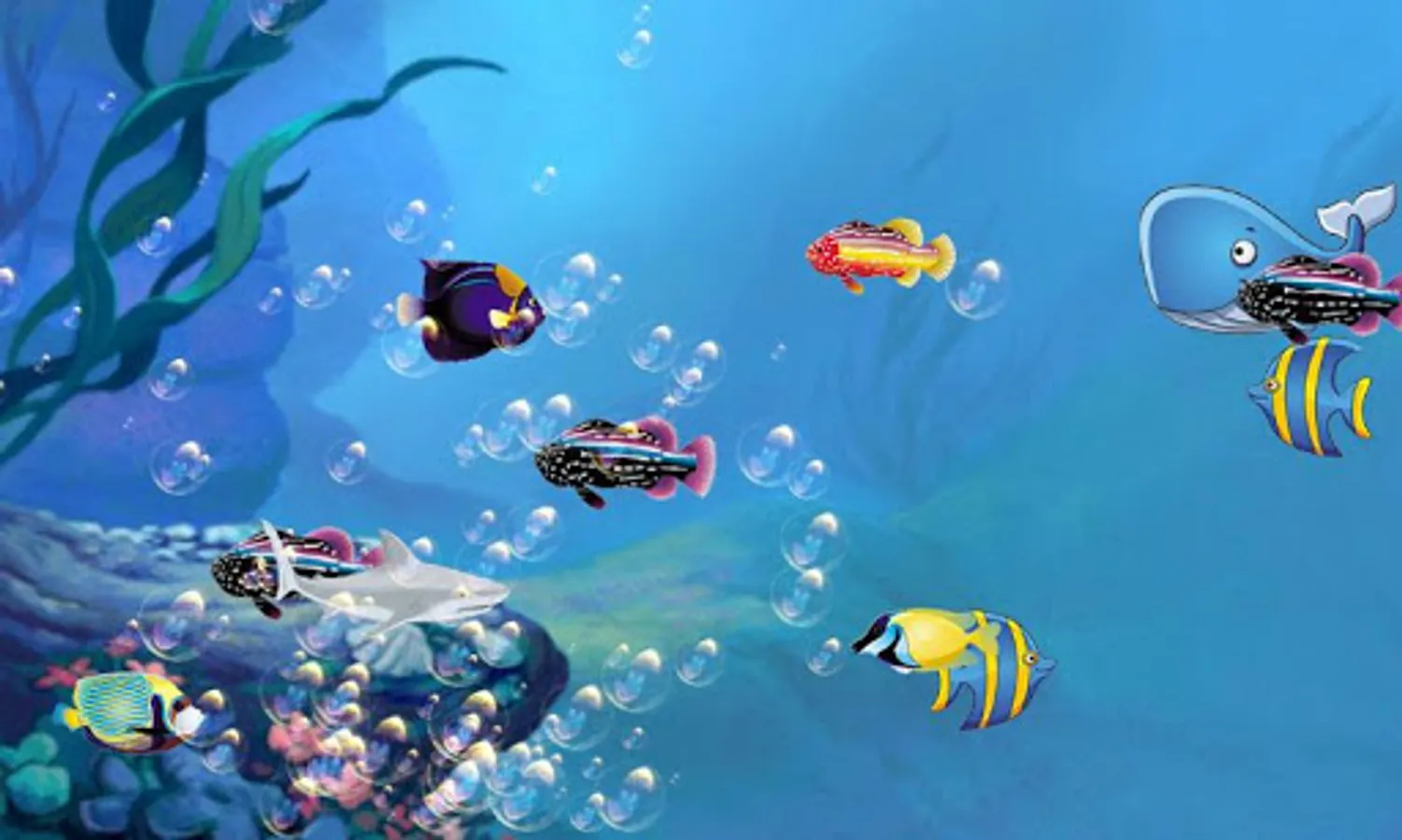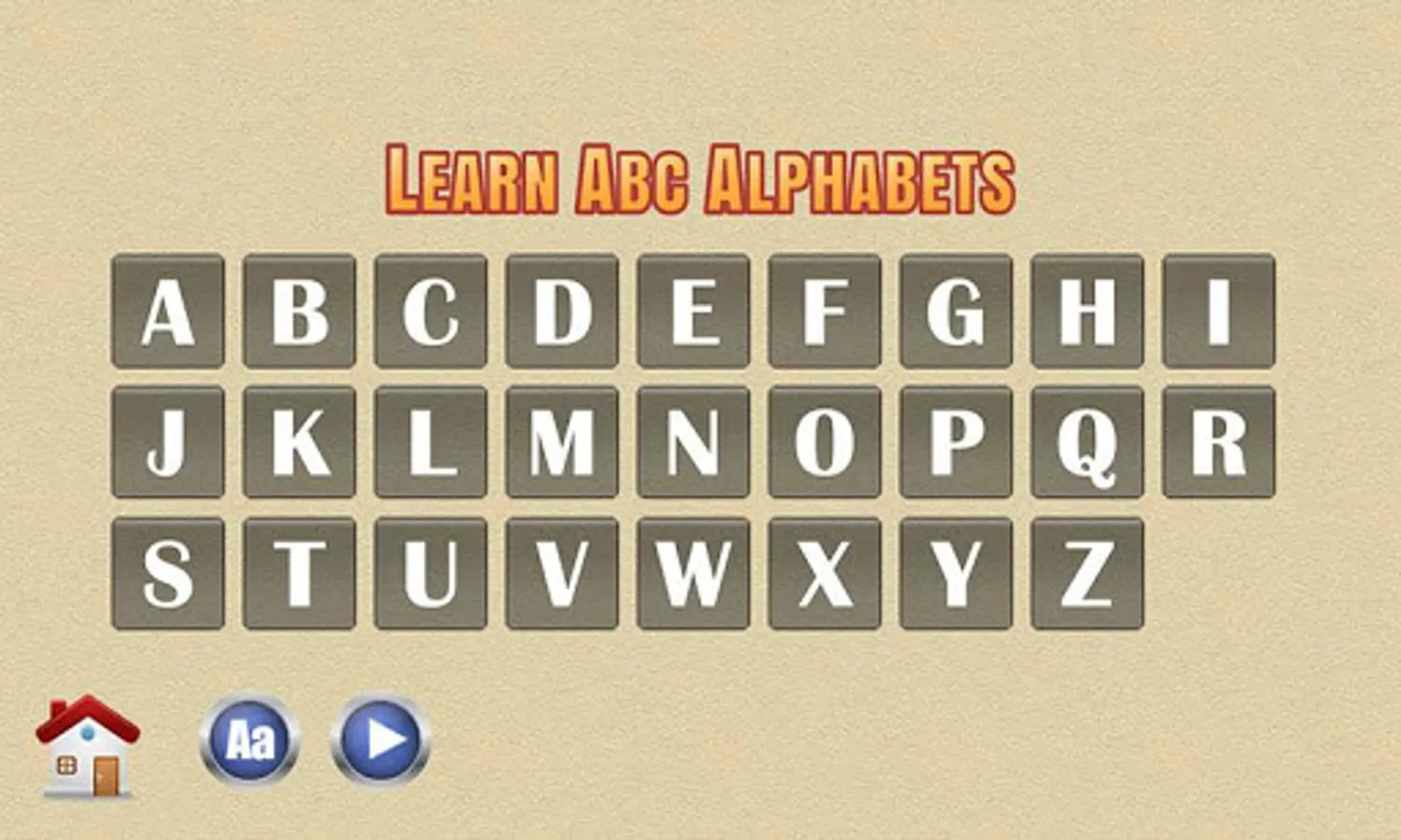 Educational software that introducing ABC alphabets to beginners using related animals, balls, balloons, fishes, car, train, and airplane.