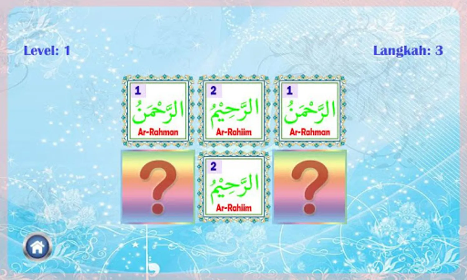 * Game remember Asmaul Husna with various levels of difficulty.