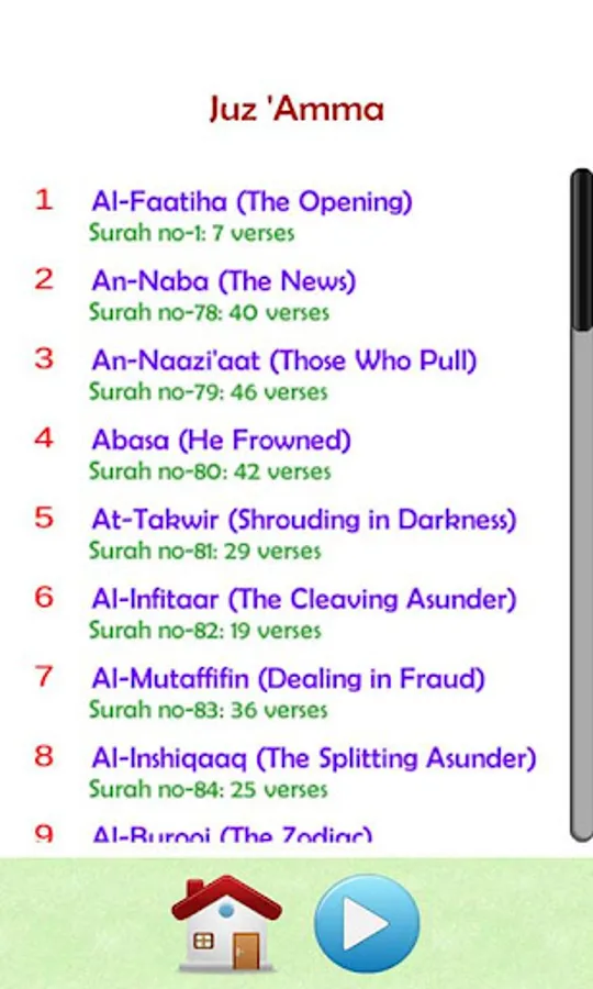Juz Amma (Juz no-30 from Al-Qur'an mushaf Madinah) complete with audio and translation. Juz Amma supports 3 languages and translations: English, Indonesian, Malay.
