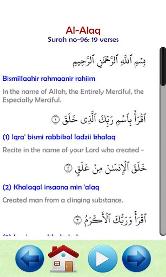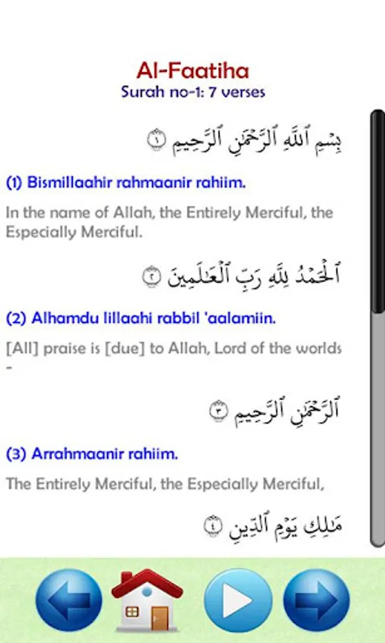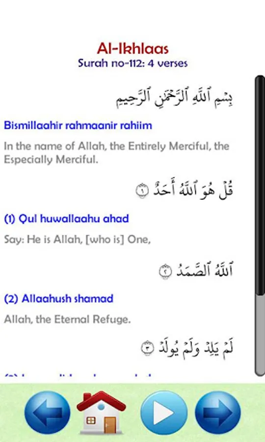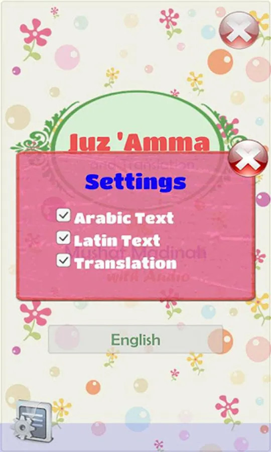 Displayed interactively with clear text that allows users to learn Juz Amma. This application can be set to display Arabic text, latin text, or translation only.
